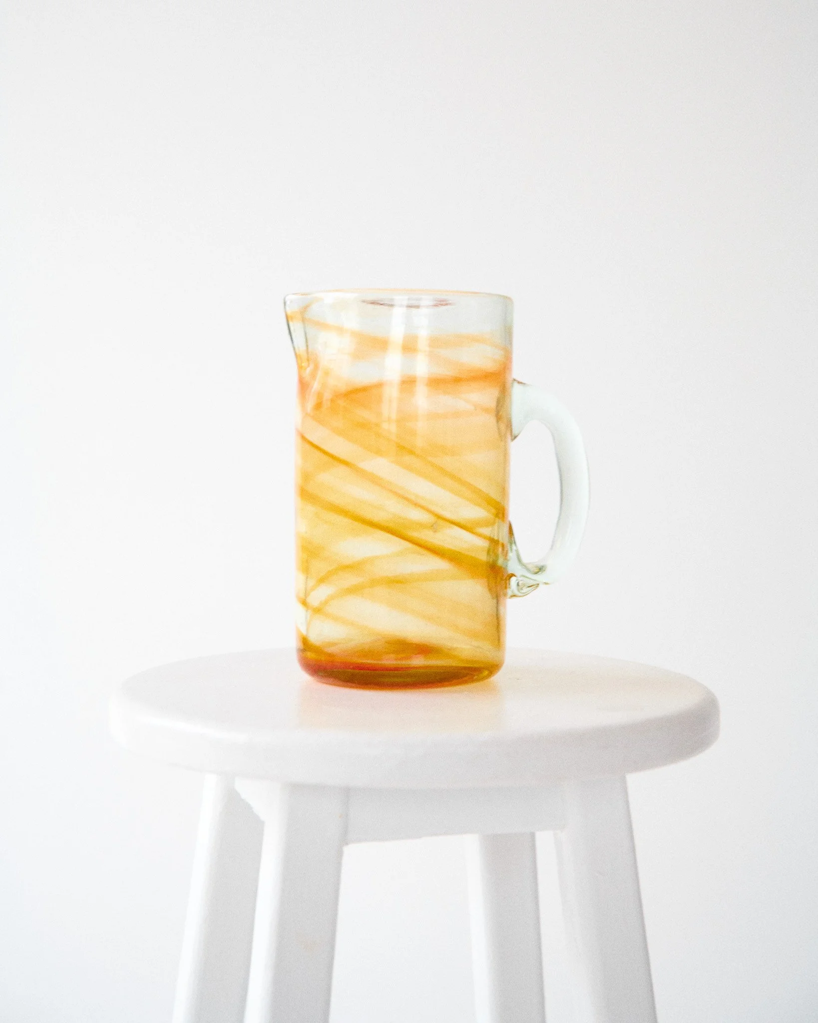 Dive into the Mediterranean with our Cala Collection. Handblown tumbler glasses and matching jugs, all individually created with recycled glass by skilled artisan glass blowers on the Balearic island of Mallorca.