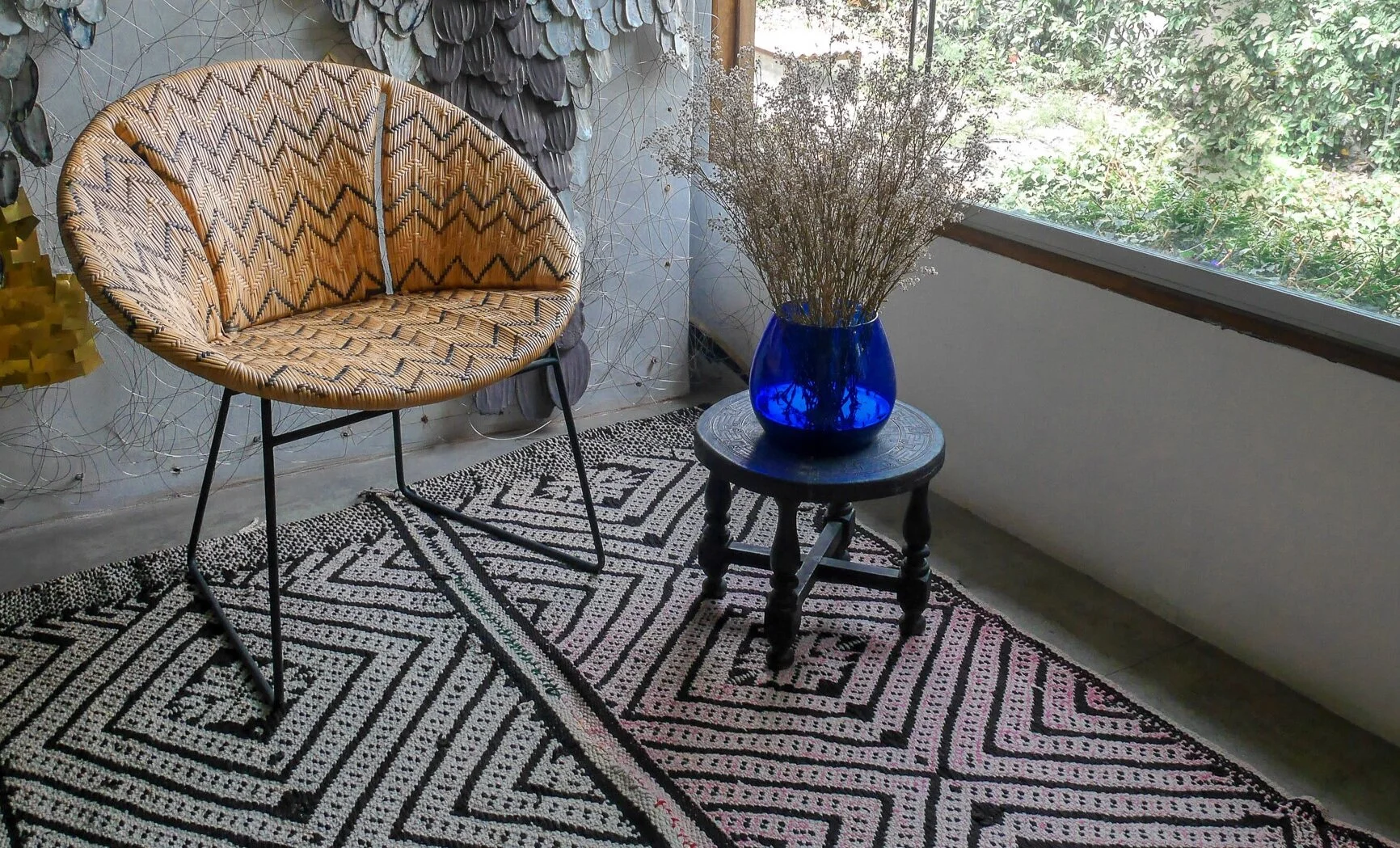 Finding unique and beautiful designs made by local craftspeople – from Berber women to Turkish nomads – she became passionate about the handmade Kilims, beautiful mosaics, vintage Beni Ouarain and Moroccan rugs that she sources and sells today.