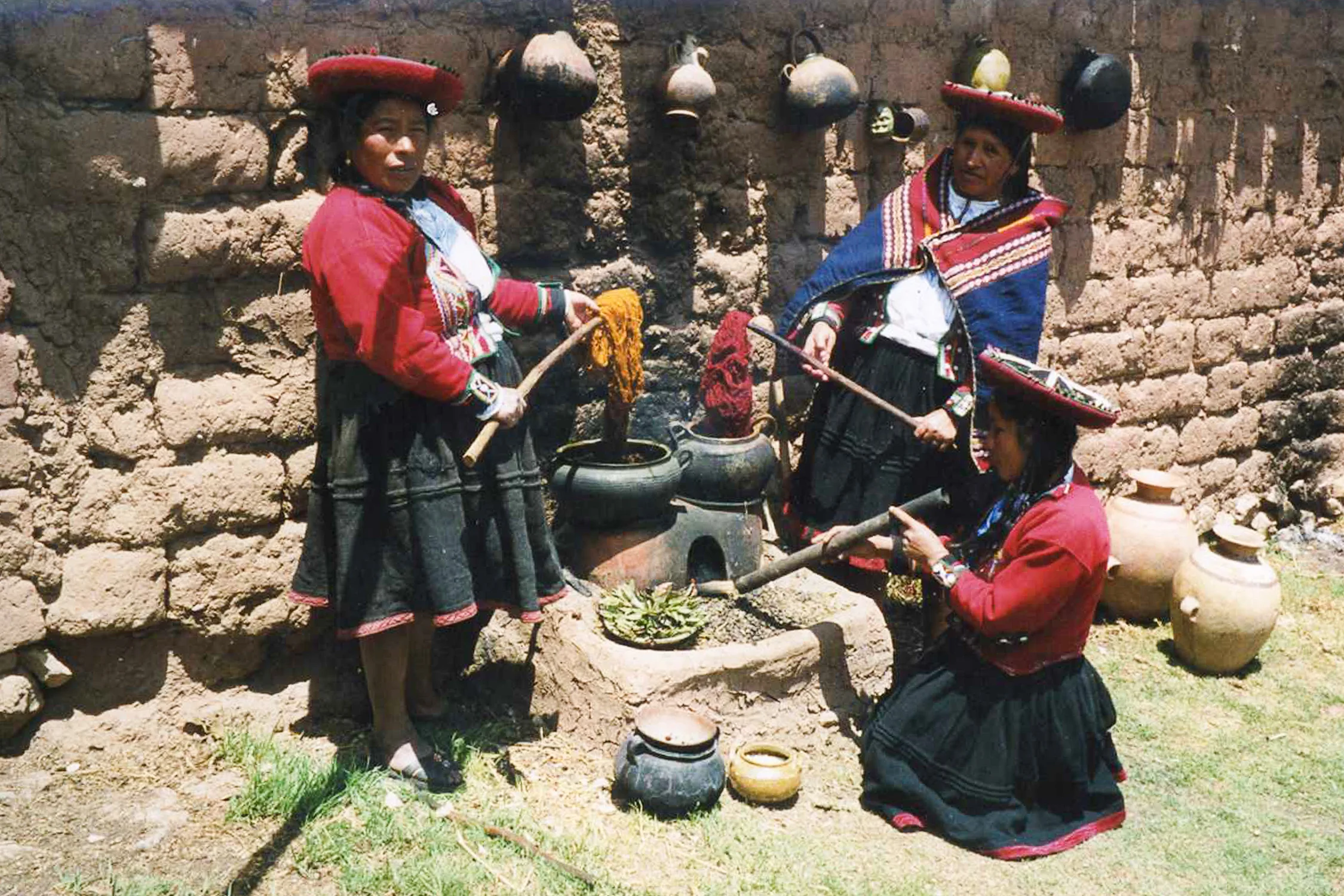 Three Ladies in Chinchero in the 80’s showing how vibrant colours are achieved in their textiles. The lady on the left in our beloved artisan Alejandra.