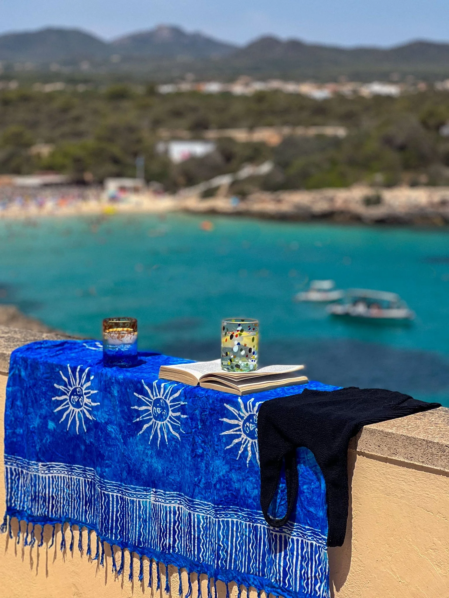 radiating warmth from the Balearic isles in cobalt blue, hot pinks and sunshine shades. a little piece of the mediterranean for your table.